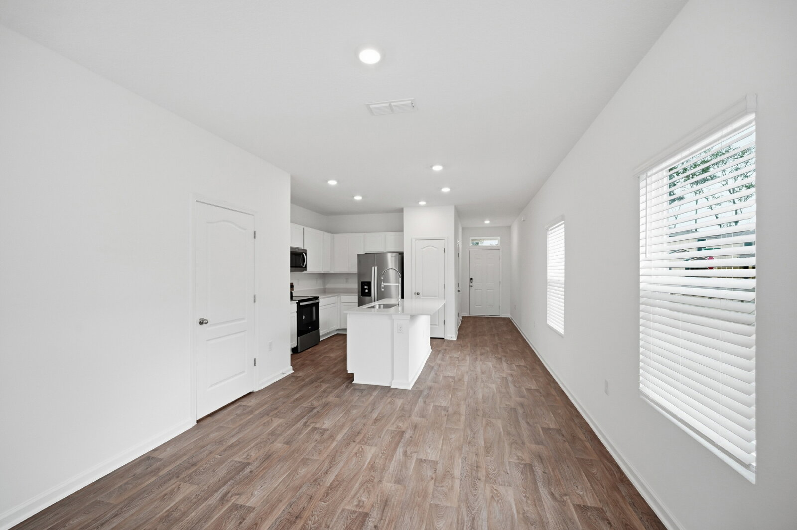 Step inside to discover a stylish, modern kitchen that is a chef's delight, complete with a spacious island and elegant quartz countertops. The open-concept layout seamlessly connects the kitchen to the bright living and dining areas, making it perfect for entertaining family and friends.